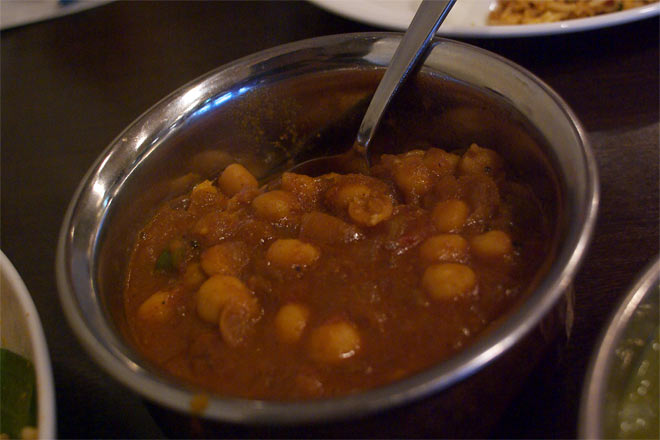レモンを利かせたヒヨコ豆とジャガイモのヘルシー.カレーとのことですが、最初に下のカレーを食べてしまったので、辛さに舌をやられてしまって(笑)