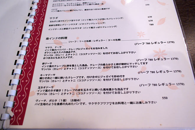 南インド料理が中心なので、楽しみ半分、様子見半分という感じで。