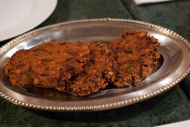粗びきひよこ豆を使ったもののようです。 ご覧のように表面はこんがり。
