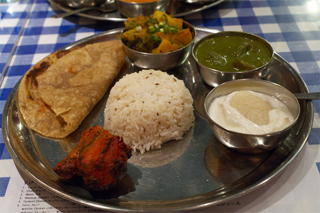 これがランチの全貌です。 ライスとナンはお代わり自由だそうですが・・・そんなに食べられません。