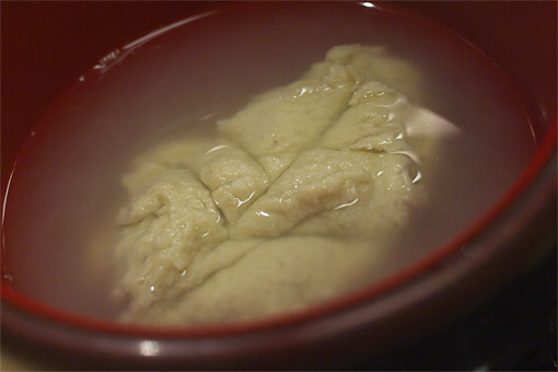 そばつゆよりちょっと薄めの汁をかけていただきます。