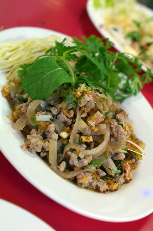 魚介の春雨サラダ。 全メニューを同時に食べているわけではないので、確かなことは分かりませんが、このお店で一番辛いかな?と思っている一皿。