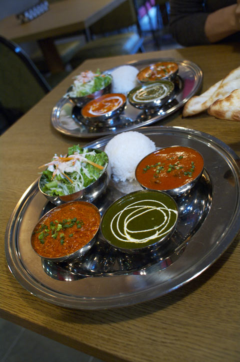 プルニマランチ(1250円:マトンカレー、キーマカレー、ほうれん草カレー、ナン&ライス、タンドーリチキン、フィッシュティッカ)