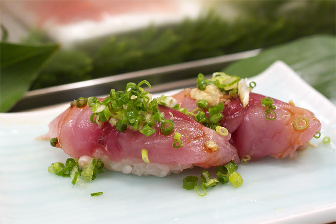 中とろ。 残念ながら、今回は今ひとつ。 普段はいいマグロ握ってくれるそうなので、リベンジに期待。
