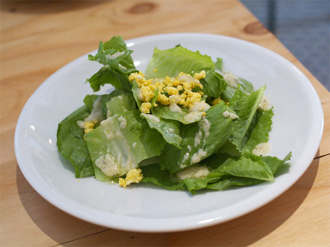 葉っぱしかないサラダではありますが、シャキシャキとした歯ざわりは立派な一皿。