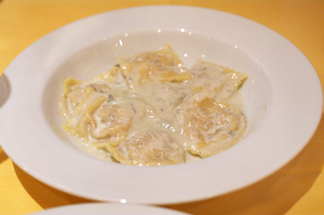イチジクとリコッタチーズを詰めたラビオリ ゴルゴンゾーラのソース