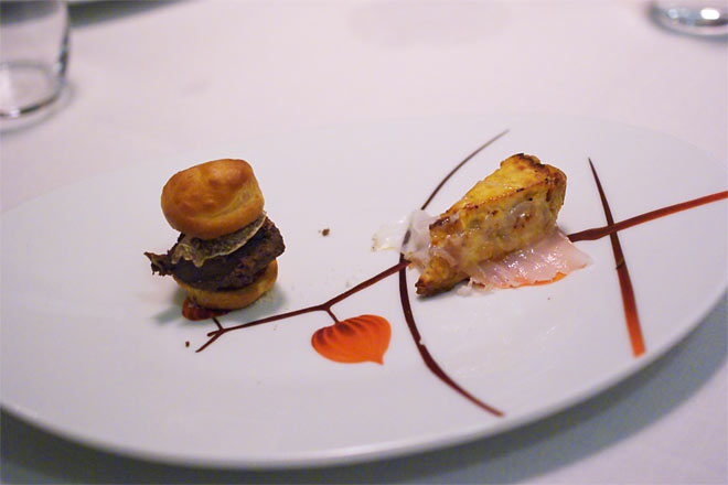 今回は野鴨のパテ、紅玉のジャム、アルバ産白トリュフをシューではさんだものと、