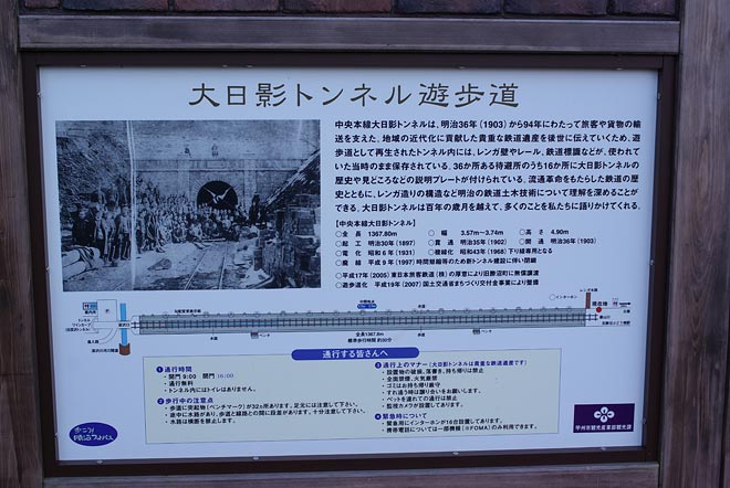 このトンネル遊歩道は、明治36年から平成9年まで使われていた「大日影隧道」を遊歩道に整備したもののようです。