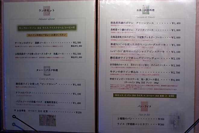 お昼のメニューはこんな感じ。 ちょっと別の暗いところで見たので、見にくててすいません。