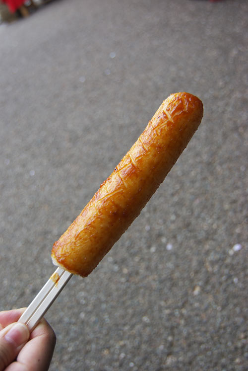 赤い椅子のところで、きりたんぽを売っているので食べることが出来ます。