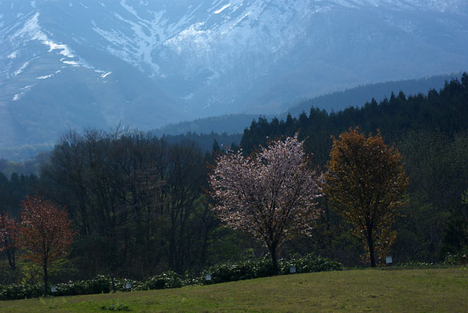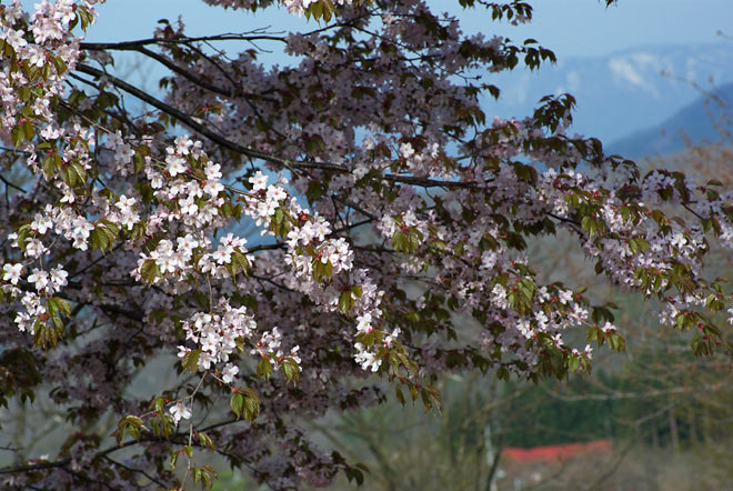 後ろに見える山の雪と桜という図もなかなかいいですね。