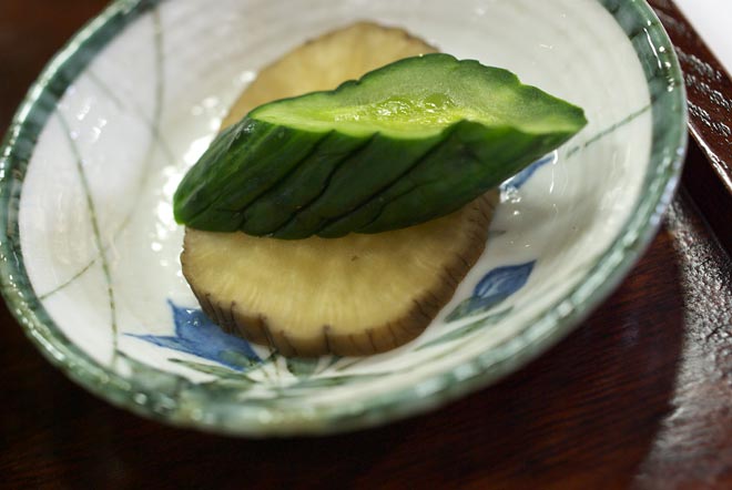 さりげなく、いぶりがっこが。