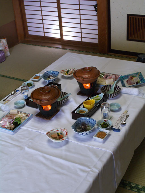 部屋にいれてもらって、早速お風呂。 部屋にはしっかり料理が並んでおりました。