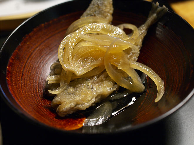 頭からぱくりと。 玉ねぎのしゃきしゃきと少し甘めの酢がぴったし。
