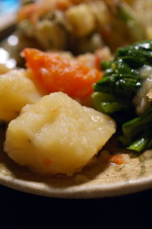 人参、長ネギなど。 油っぽさも控えめで、ねぎと人参の優しい味わいが熱燗によくあいます。