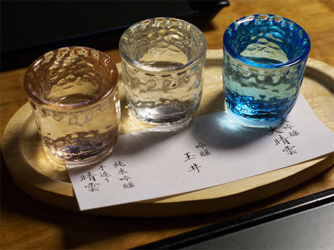 ご覧のように、純米吟醸手造り青雲、吟醸玉井、大吟醸大青雲の3つ。