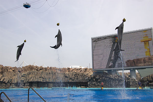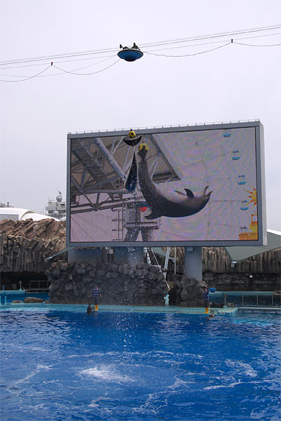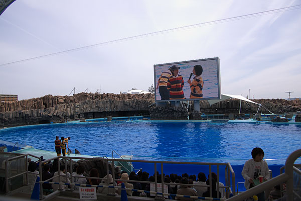 こちらはメインプールにて。 飼育員へのイルカについてのインタビュー形式でイルカについていろいろ。