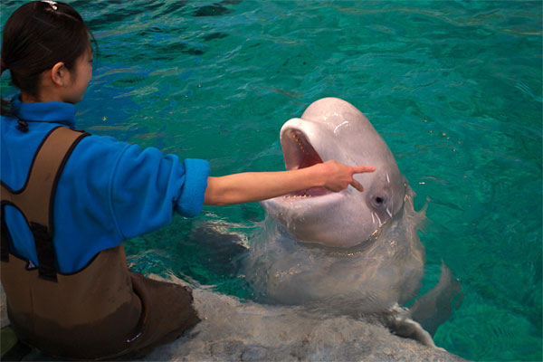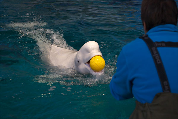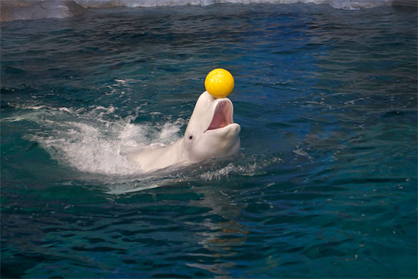 こちらはベルーガ。 なかなか芸達者のようです。 あまりベルーガのショーは見た事ないので面白いかもしれません。