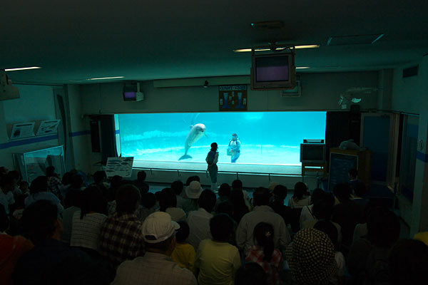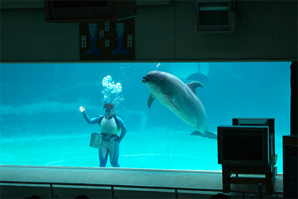 しかし、面白かったのは、イルカはガラス越しにこちらの合図で動いたりしておりますので、よく見ていることが