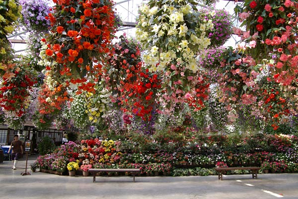 入ってすぐにこちらの温室の花が天井から下がっております。 なかなか見事。