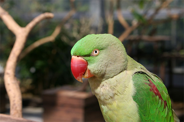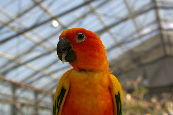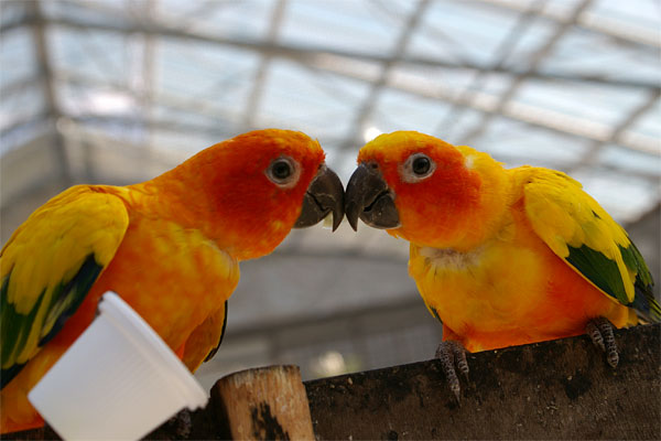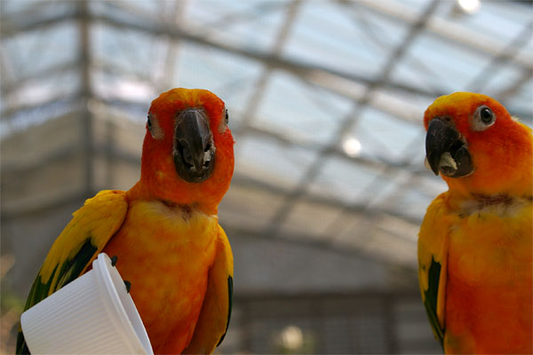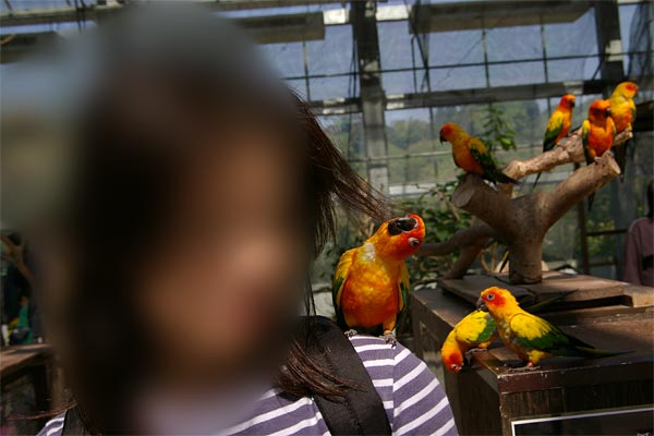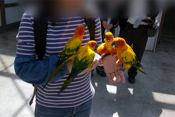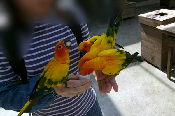 入り口入って左側にはオウムやインコが放し飼いになっているところでは