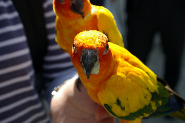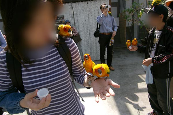 朝イチでの訪問ということもあり、インコもお腹減っているのでしょう、がっついて寄ってきます。