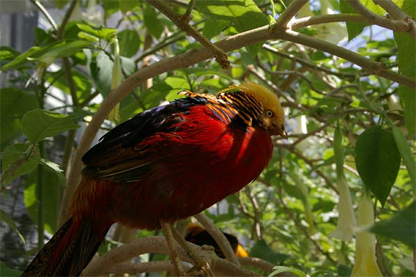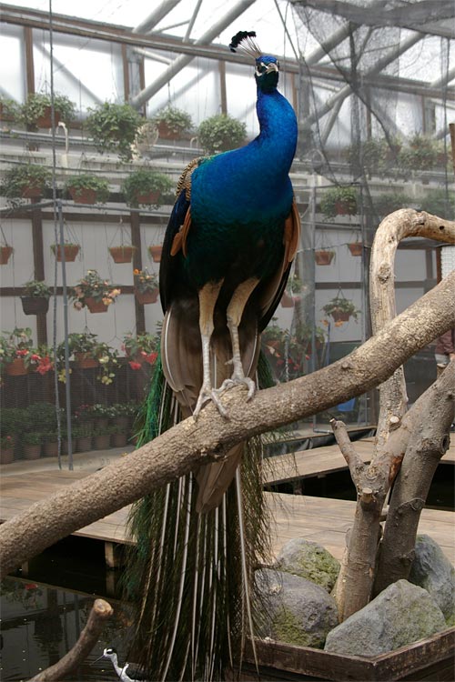 ケージはいくつかに分かれており、最初のブースはインコ、オウムが多くて、次はスイレンが咲いているところ、次は大物ブースという大まかに3つに。