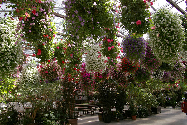 花も結構すごいと思うんですが・・こんなに上から吊り下げていると手入れとか、どうするんでしょう?