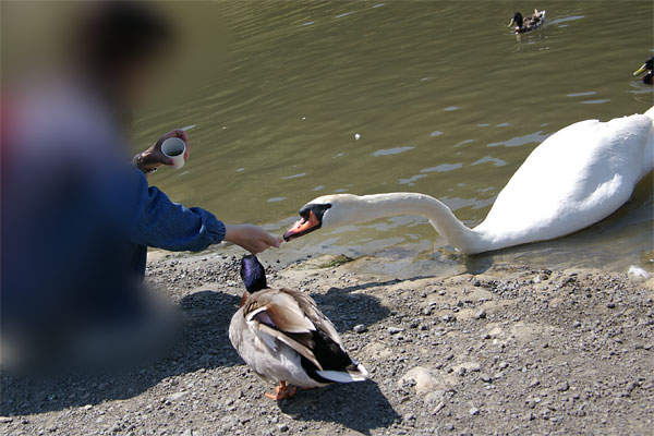このときはかなり痛かったようで、2度と白鳥には餌をあげてませんでした(笑)