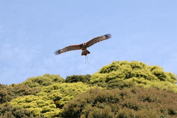 こちらはハリスホーク。 鷹狩などでもっともよく飼われているものらしく、おおらかで馴れやすく、飼育も調教もしやすい初心者向けとのこと。