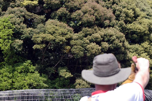 この写真は奥の森に止まっていたのを呼びよさたところ。 下の写真参照。