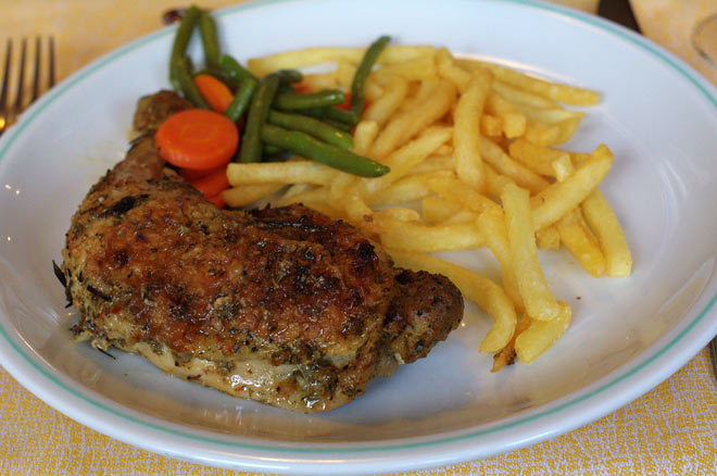 チキンとポテト。 くたくたの緑黄色野菜とはお決まりか(笑)