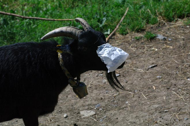 やぎはよく分かっているようで、この袋を見ただけで、何匹も突進してきます。
