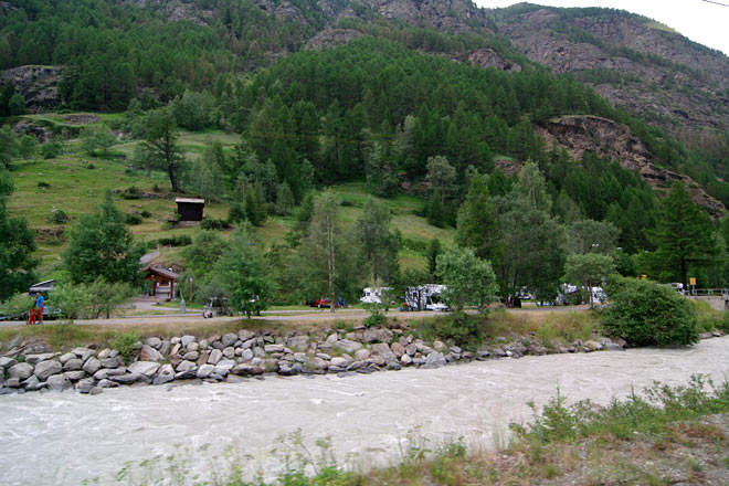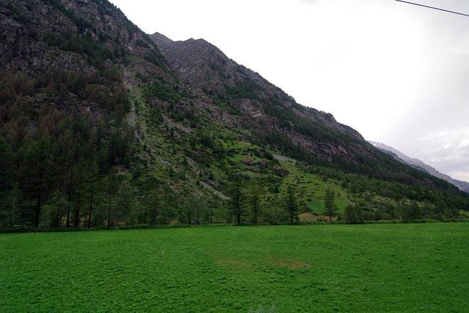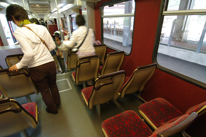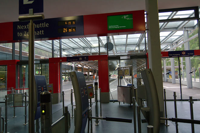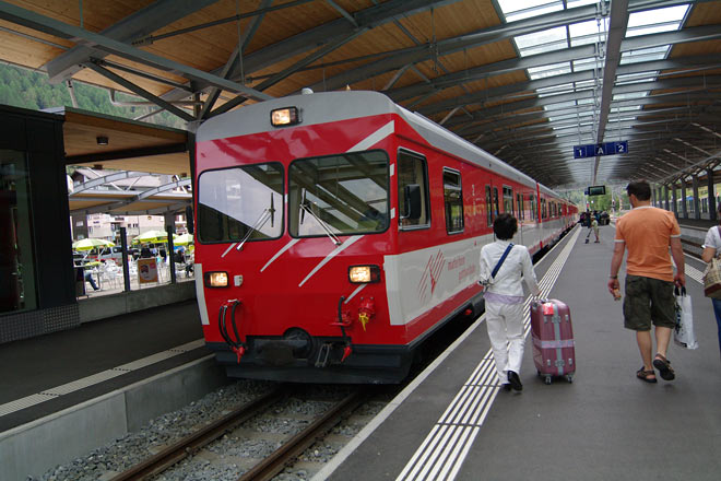 ツェルマットは一般車両が立ち入り禁止のため、手前のティーシュという町で電車に乗り換えて、ツェルマットに乗り込みます。
