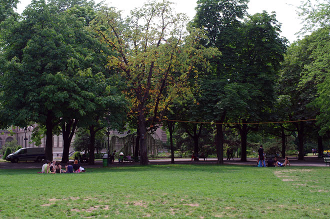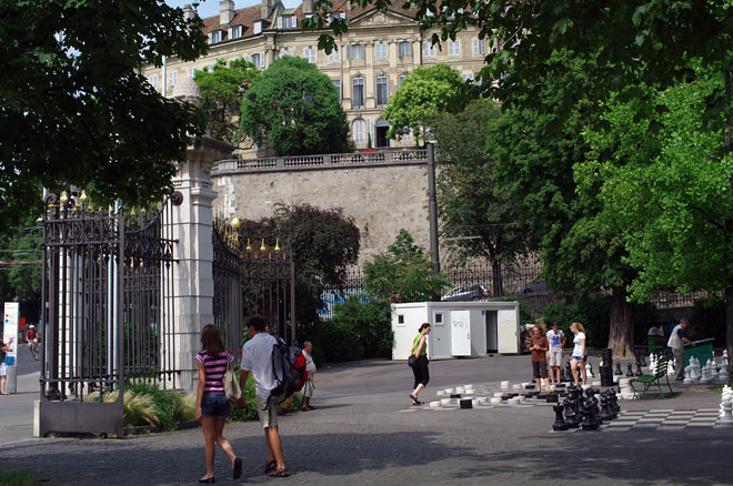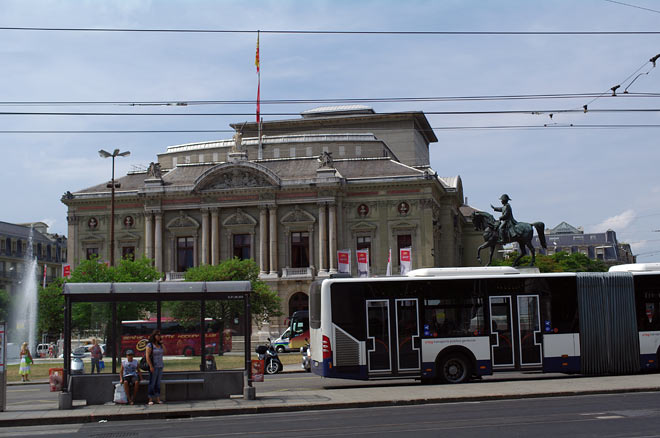 ジュネーブ大学前のバスチヨン公園内あるらしいので、公園前でバスを止めて。