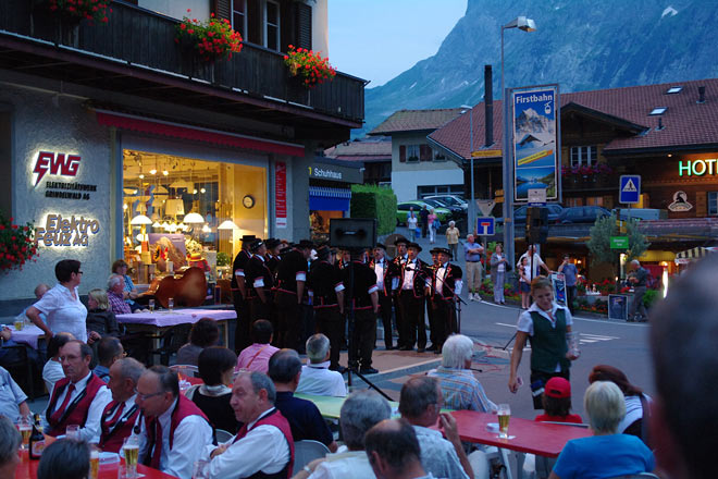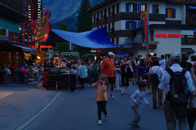 実はこの日はグリンデルワルトの夏祭りの日ということもあり、バスは街はずれで止めなければならず、歩いてホテルまで移動します。