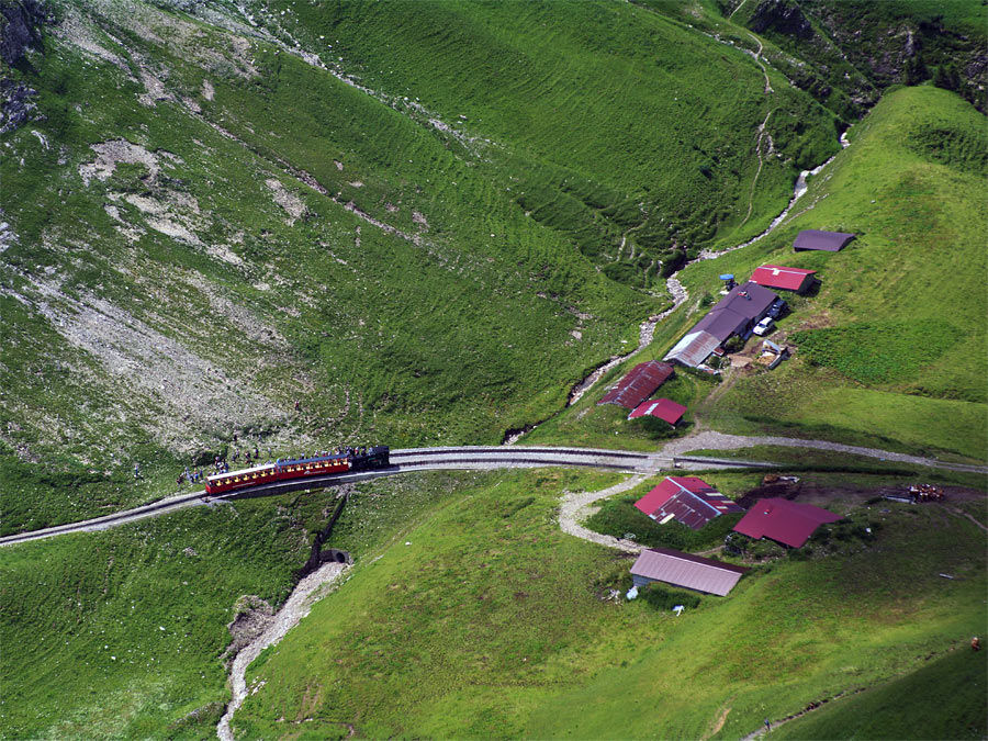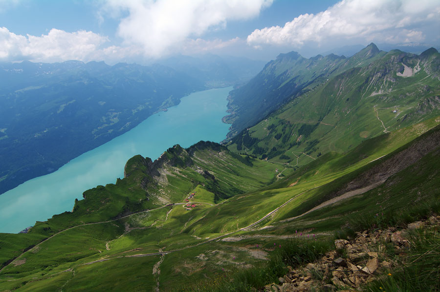これは上り始めたところ。 ブリエンツ湖が目の前に広がっていきます。