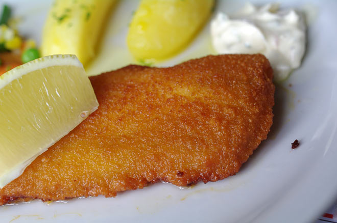 名物だそうですが、川魚のフライです。 この油切れの悪さはすごいです(笑)