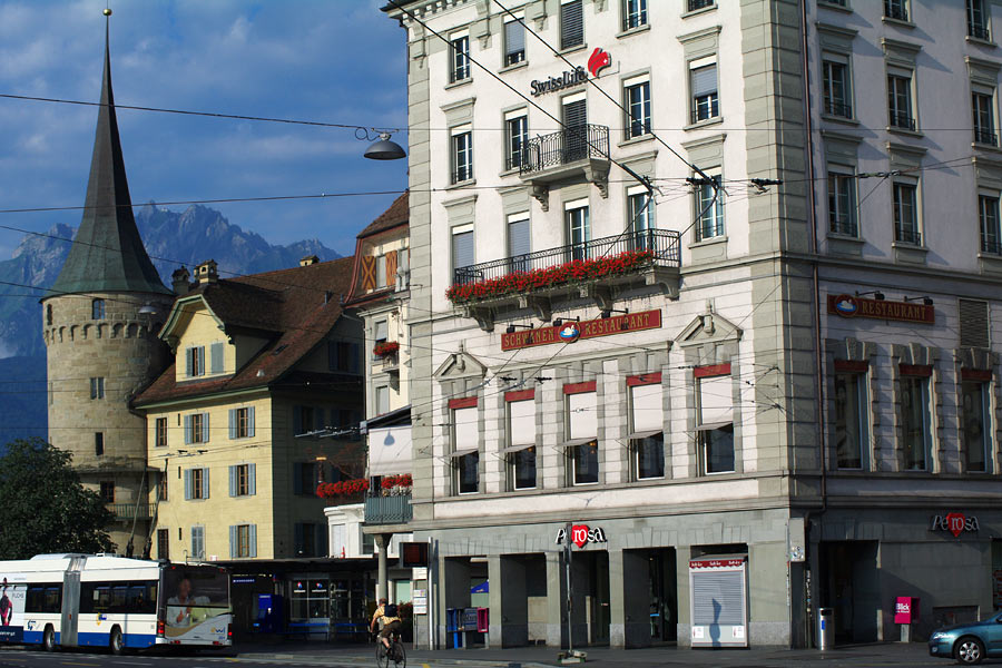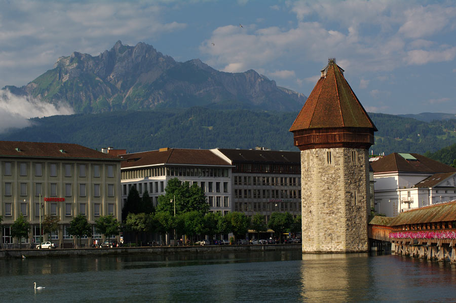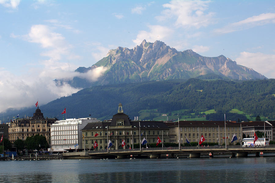 見える山はピラトゥス山(Pilatus):標高2132メートルだと思われます。